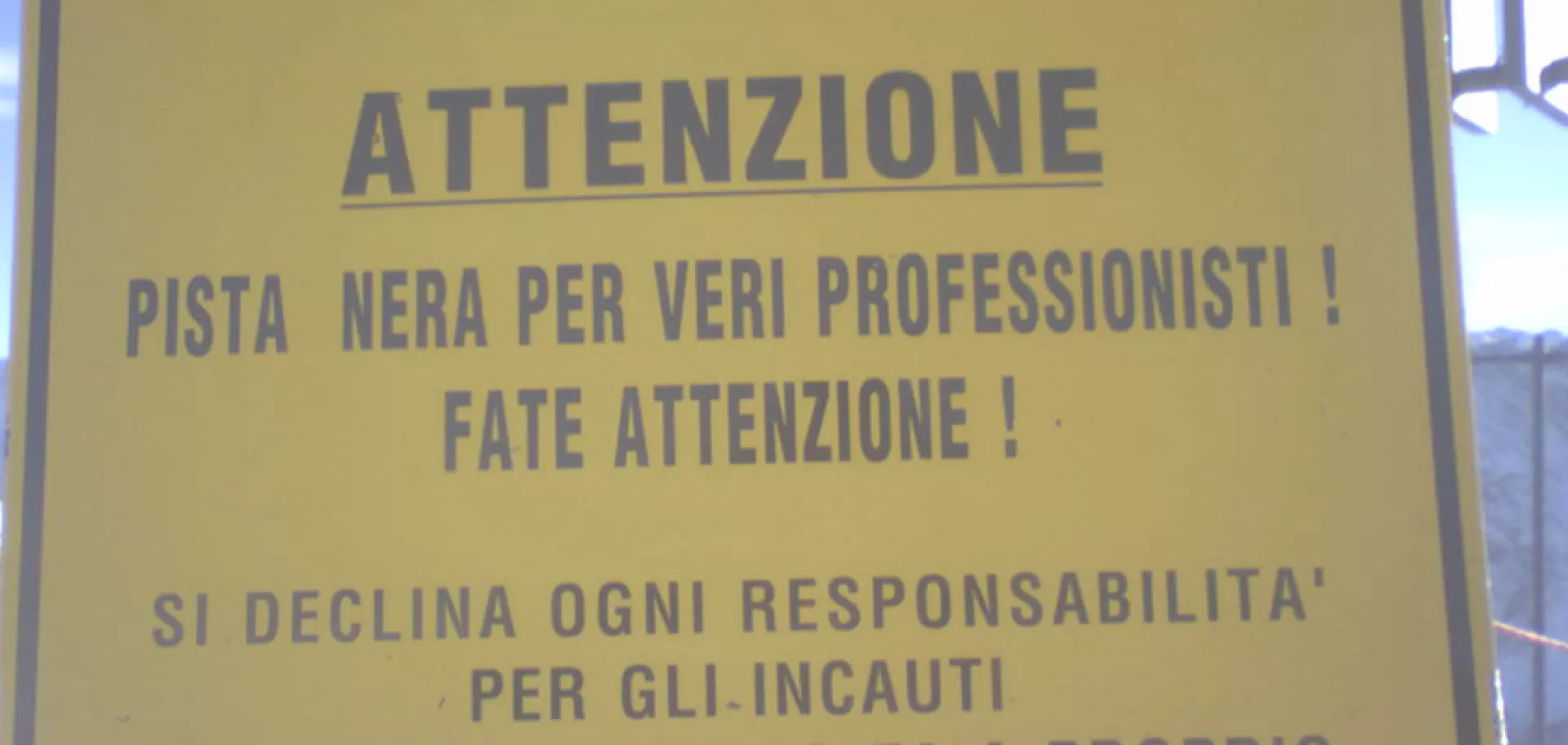 Un cartello alquanto eloquente accoglie gli sciatori che si avvicinano alla pista Thoeni: ...continua