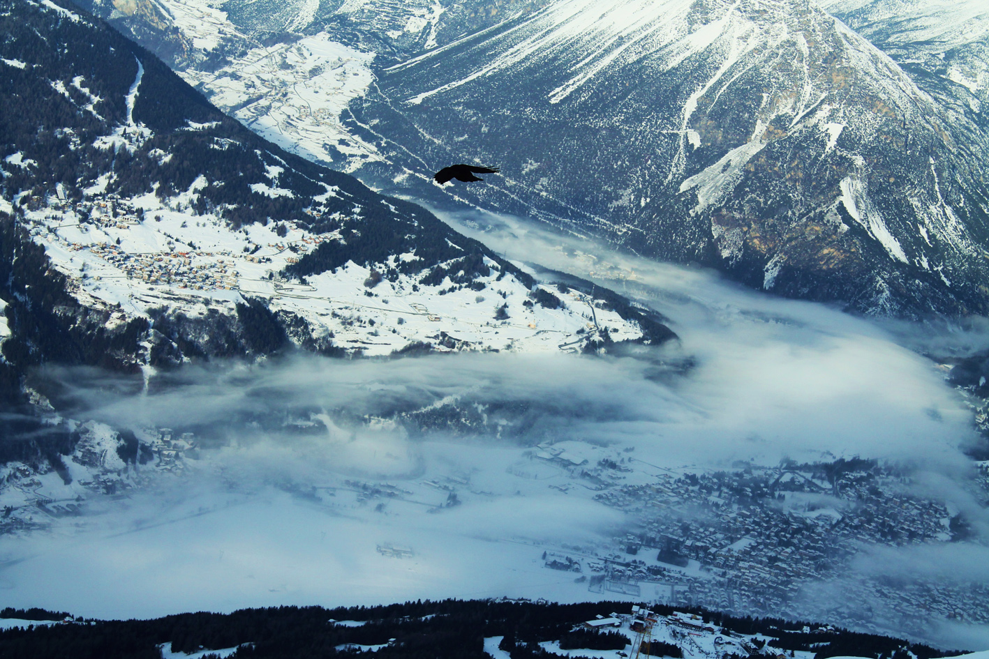 Foto scattata dalla vetta del monte Tamai, sul comprensorio dello Zoncolan (UD). Ad oggi la seggiovia che porta sul Tamai è chiusa a causa di una valanga che ne ha investito i tralicci.