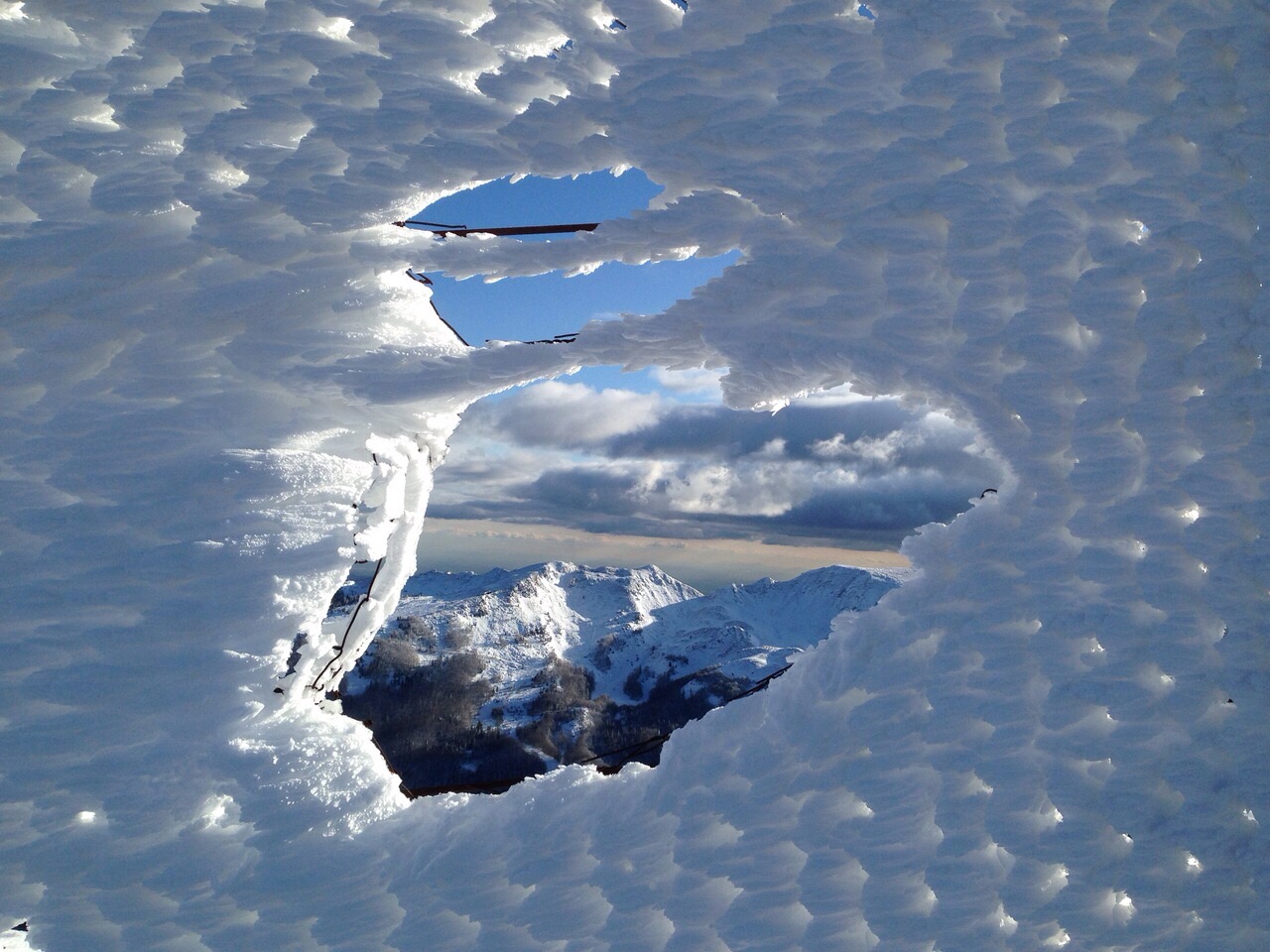 Abetone 24/01/2015. Arrivo Ovovia. Foto scattata attraverso un buco nella rete di protezione.