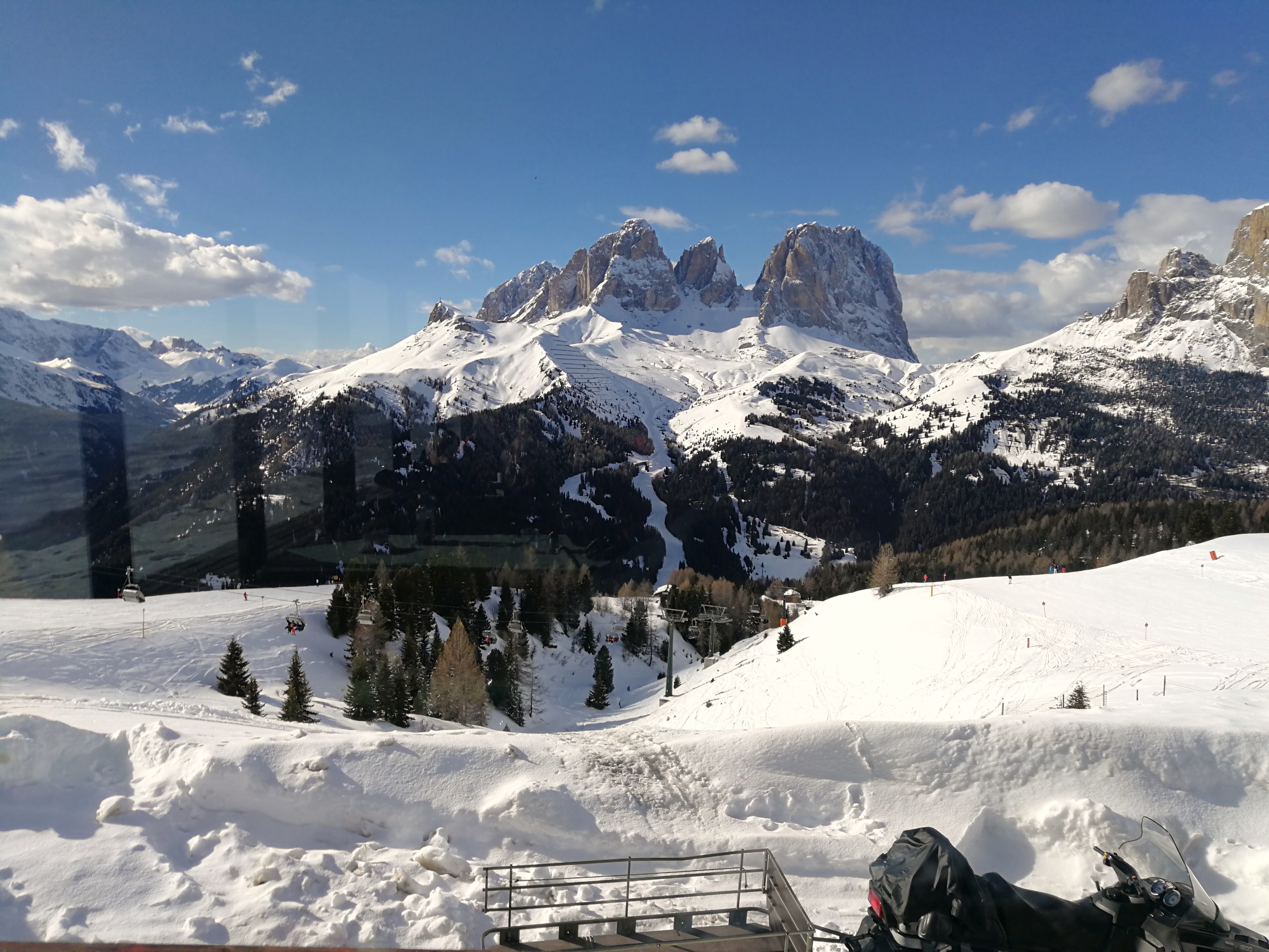 Abbiamo passato due giorni in val di Fassa e abbiamo sciato il primo giorno in Val Gardena (Sellaronda arancione-senso orario)