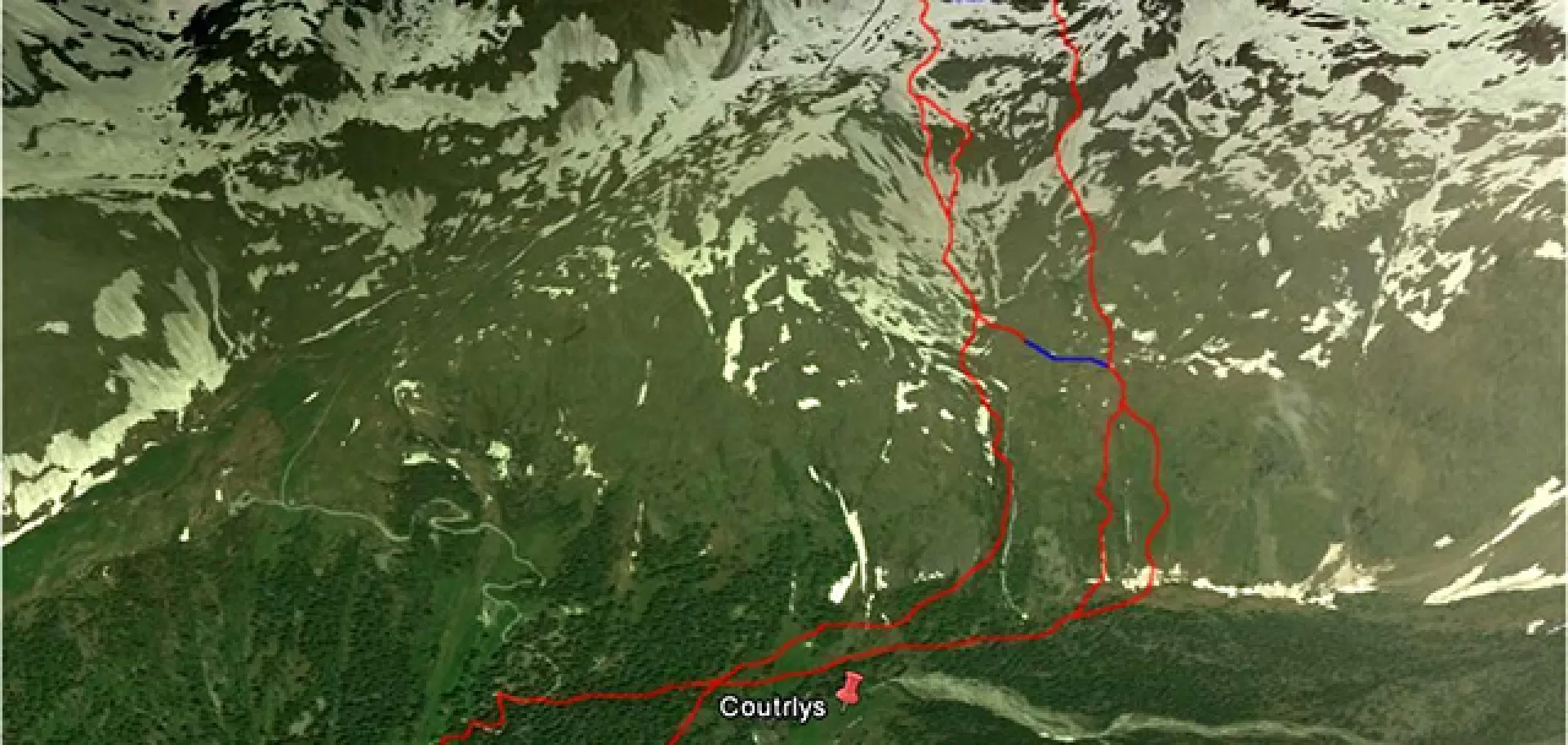 La discesa segue il vallone incuneandosi in un canale piu' ripido con possibile presenza di fitti cespugli che complicano la sciata. Evitare per quanto possibile di portarsi troppo sul versante destro, frequenti distacchi dalle incombenti rocce strapiombanti.