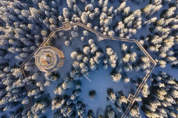Certo, a meno che non abitiate in Friuli Venezia Giulia Rogla non è proprio dietro l'angolo. La località slovena però, oltre a un' interessante ski area, tra l'altro vicina a Maribor, offre anche un centro termale d'eccezione. Ma quello che farà la differenza nella vostra vacanza romantica sarà camminare sulle cime degli alberi. Letteralmente, o quasi. La Tree Top Walk è una passeggiata che si svolge su una passerella a 37 metri di altezza. Si sovrastano i boschi di conifere imbiancati mentre lo sguardo abbraccia i monti Pohorje. La passerella di legno si trova a 20 metri d'altezza ed è lunga 522 metri. Uno scivolo dalla cima della torre riporta alla base della stessa. È lungo 60 metri ed è completamente chiuso.