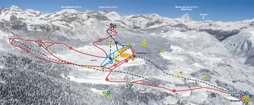 Gli impianti sono moderni: una telecabina ad 8 posti, 2 seggiovie quadriposto, 1 seggiovia biposto e 2 tapis roulants nell' "Winter Park", parco giochi sulla neve situato all’arrivo della telecabina Mongnod-Chantorné, campo scuola e snowpark. L'innevamento artificiale è disponibile sia per lo sci da discesa che per lo sci da fondo, in particolare per l'anello di tre chilometri. Altri anelli di 5 - 7,5 - 10 - 20 km completano l'offerta per lo sci di fondo; tra questi, la panoramica pista Grandes Montagnes parte a 1870 metri in località Chantorné, all'arrivo della cabinovia. E' possibile praticare lo sci nordico anche sul versante sinistro della montagna, facilmente raggiungibile tramite la strada. Il collegamento con la pista di Verrayes garantisce un circuito di 40 km fruibili con un unico biglietto.