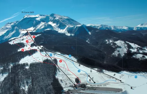 Offriva alcune delle più lunghe discese per lo sci alpino del Massiccio del Gran Sasso. Una seggiovia saliva ai 1.800 metri di Colle Abetone, affiancata dalla seggiovia “Ginestra”; servivano due interessanti piste rosse, mentre 1 tapis roulant serviva la zona bassa. I dislivelli variano tra i 1373 metri e i 1775 della stazione di monte della seggiovia. 20 km di piste da fondo e uno snowpark erano alcune delle opportunità.