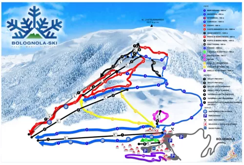 - Nell’area del Castelmanardo, servita dall’omonima sciovia e da quella di Porte di Berro, ci sono le piste più tecniche. Una nuova pista chiamata Direttissima, la n.°10, parte dall’arrivo della sciovia Castelmanardo a oltre 1500 metri di quota, vede un primo tratto classificato come pist...
