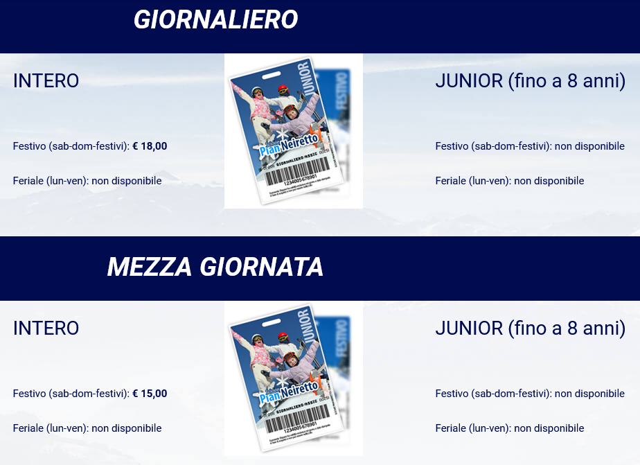 Prezzo skipass giornaliero intero: 18,00