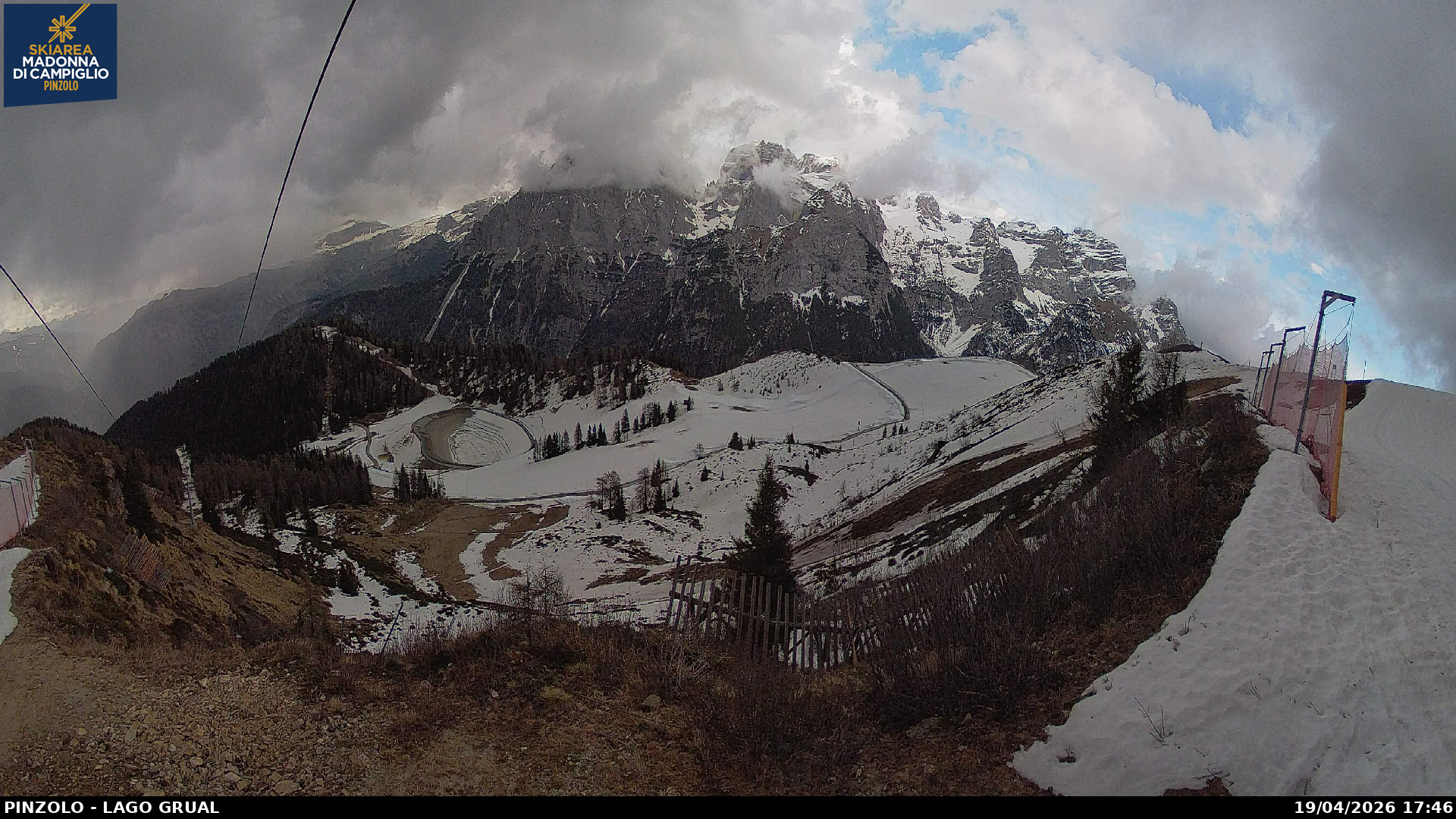 Webcam panoramica Pinzolo. Le webcam sul comprensorio sciistico di Pinzolo, collegato sci ai piedi con Madonna di Campiglio, in Trentino. Le webcam inquadrano la pista Tulot, il lago Grual e Malga Cioca.