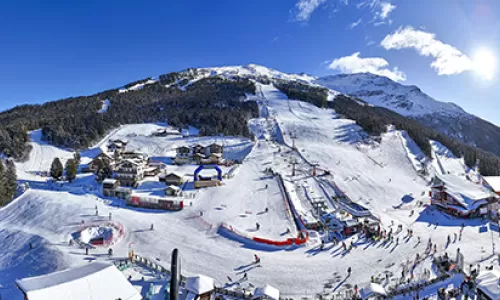 Bormio, nel cuore del Parco Nazionale dello Stelvio, è una delle località più famose d'Italia, anche grazie alle gare di discesa libera di Coppa del Mondo sulla pista Stelvio, che da 3000 m scende sino in paese a 1200 m. La cittadina è adagiata nella vallata, denominata fin dall'antichità Magnifica Terra, attorniata dalle tre montagne Cima Piazzi, Vallecetta e Reit, disposte ad anfiteatro. Grazie ai Mondiali di sci del 2005 sono stati effettuati importanti investimenti che hanno sensibilmente migliorato la dotazione di impianti dell'area. Bormio 2000 è il centro dell'intera skiarea.