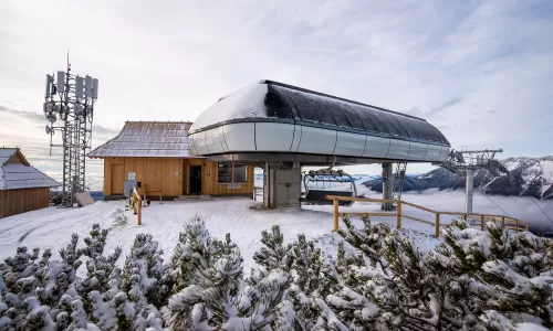 La vetta del Krvavec si raggiunge con una cabinovia in funzione tutto l’anno. Il panoramico comprensorio offre 30 km di piste servite da 11 impianti di risalita che servono tracciati per ogni livello disegnati tra i 1450 e i 1971 metri di quota.