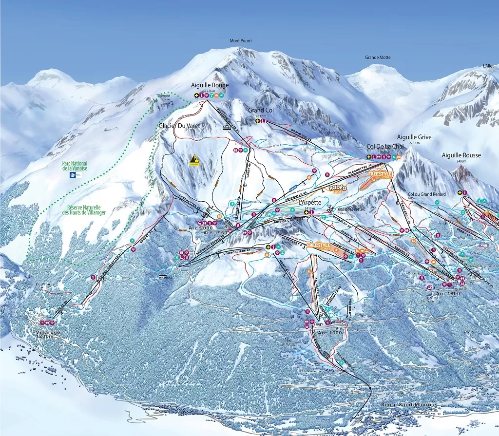 Les Arcs fa parte del comprensorio Paradiski (425 km di piste, 157 impianti, 3 ghiacciai)