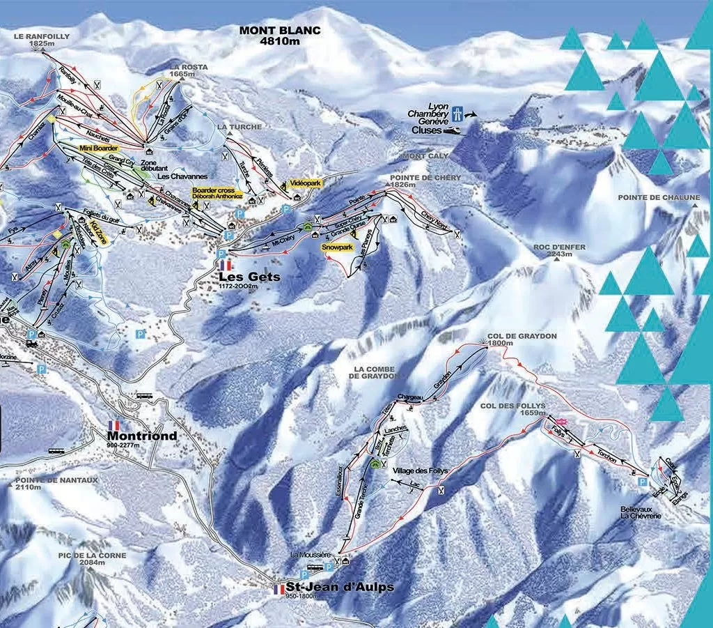 Les Gets fa parte del vasto comprensorio Les Portes du Soleil, con 650 km di piste e 201 impianti, a cavallo tra la Francia e la Svizzera.