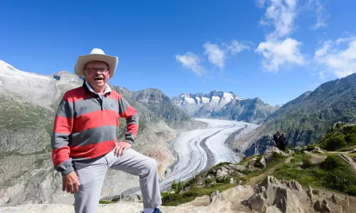Dal Monte Moosfluh vi è un'invidiabile vista sul ghiacciaio dell'Aletsh, forse la migliore del comprensorio, da dove si può vedere il più lungo ghiacciaio alpino, talmente unico da essere protetto dall'Unesco. Questo gigante misura 23 km e si estende dalla regione della Jungfrau (4000 m) fino ai 2500 metri di altitudine della gola della Massa. Copre una superficie di 86 kmq; a Konkordiaplatz, la zona in cui si riuniscono i ghiacciai di Aletschfirn, Jungfraufirn, Ewigschneefeldfirn e Grüneggfirnl la neve e il ghiaccio sono spessi più di 900 metri.