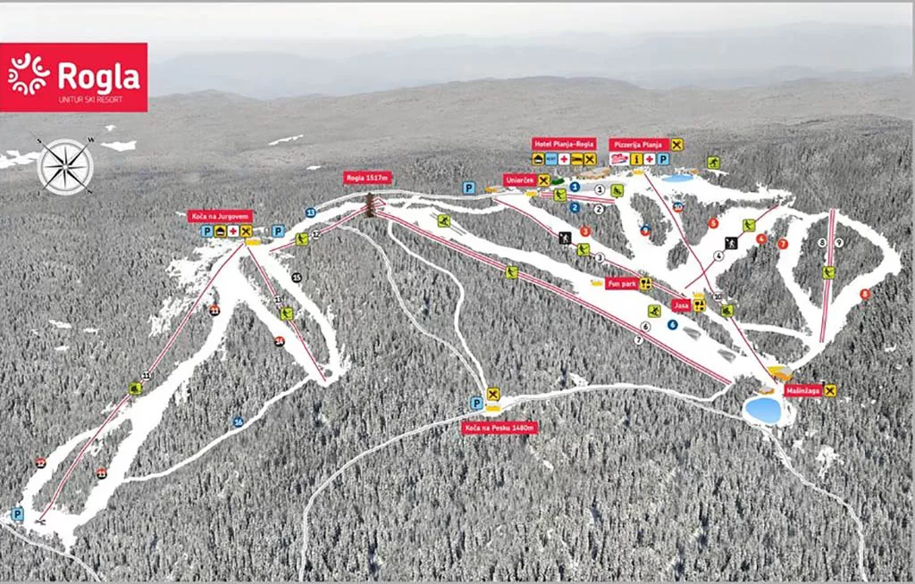 Rogla è una stazione sciistica della Slovenia, vicino alla più famosa Maribor. La ski area di Rogla, che si trova nel comune di Zreče, si sviluppa sul monte Pohorje. A disposizione degli sciatori ci sono 9 skilift e 2 seggiovie quadriposto al servizio di 16 piste adatte a ogni livello tecnico, dai campi scuola alle piste nere. Si scia su circa 100 ettari di piste. Per snowboard e sciatori freestyle c'è il Fun Park Rogla sul versante sinistro del centro sciistico Mašin Žaga. Divertimento e adrenalina per tutti e in ogni stagione sulla pista per slittino invernale ed estiva Zlodejevo con 1.360 m di discesa tortuosa. Lo sci notturno è in programma da giovedì a domenica, sulle piste illuminate Jasa e Košuta.
