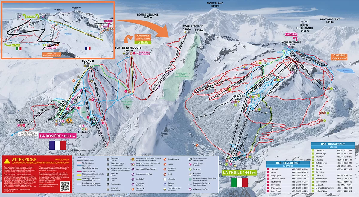 La Rosière è un grazioso villaggio francese arroccato a 1850 metri, sulla balconata che guarda la Valle Olimpica di Albertville. Fa parte del comprensorio sciistico Espace San Bernardo, sul confine italo-francese. Un unico skipass permette di usufruire di 152 km di piste per lo sci alpino con collegamento internazionale sci ai piedi verso le piste della vicina La Thuile, sul versante italiano.