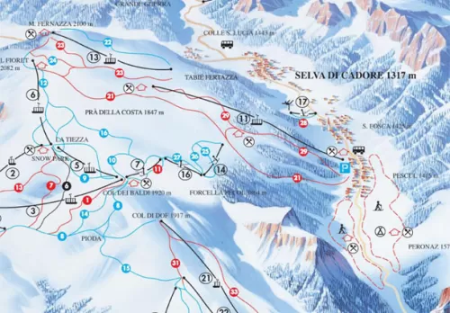 Lo ski resort di Selva di Cadore con Zoldo e Alleghe, formano il bellissimo comprensorio del Civetta, lo Skicivetta, (con 80 km di piste, 23 impianti e 4 skibus di collegamento), inserito a sua volta nel carosello sciistico Dolomiti Superski. Gli appassionati di sci alpino trovano nell'area sciistica di Selva 2 seggiovie e 3 skilift che risalgono 8 piste di varia difficoltà che scendono dal Monte Fernazza (2100 m) verso il demanio sciistico di Alleghe e dall'altro lato verso l'abitato di Selva.