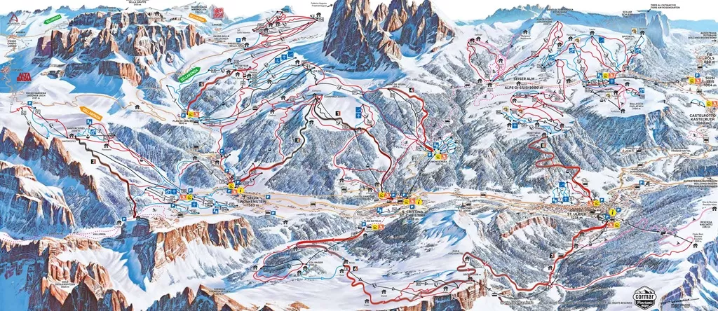 Gli impianti sono molto moderni, ma nelle ore mattutine è possibile trovare code per salire verso il Passo Gardena. La Val Gardena è sicuramente una delle stazioni top per qualità delle piste, della neve, degli impianti, dell'offerta turistica complessiva e dei panorami sotto il Sasso Lungo, il Gruppo del Sella e quello delle Odle.