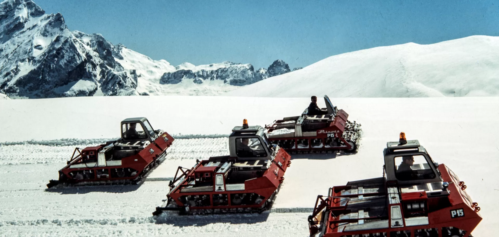 Ma facciamo un passo indietro. Vi immaginate centinaia di persone su un pendio innevato che si affannano calpestando la neve? Fino agli anni ’60 le piste si preparavano così, con risultati immaginabili e soprattutto, pendii che ben presto, con il passaggio degli sciatori, si rovinavano, facendo emergere sassi e terra. Ernst Prinoth, pilota e titolare di un’autofficina a Ortisei pensò così di creare un mezzo che potesse lavorare meccanicamente le piste. Chiaramente non era facile concepire un veicolo che abbinasse alte prestazioni, per arrampicarsi sui pendii, e leggerezza, per non sprofondare nella neve fresca. Ispirandosi alle auto da corsa concepì il primo prototipo, il P60, che nel 1962 inaugurò sulle piste. Nel 1965 i mezzi Prinoth battevano per la prima volta i tracciati di un mondiale di sci, a Seefeld: in poche ore fu fatto ciò che in precedenza impiegava giorni di lavoro e centinaia di uomini. Dopo quel debutto gli ordini non si contarono e l’officina in pochi anni diventò una vera e propria azienda.