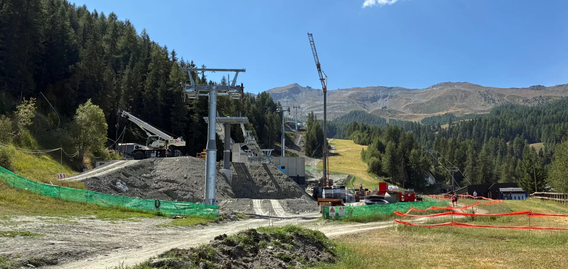 I piloni risultano già posizionati così come anche le stazioni appaiono già a buon punto, in primis la stazione di valle che presenta la meccanica già montata.
