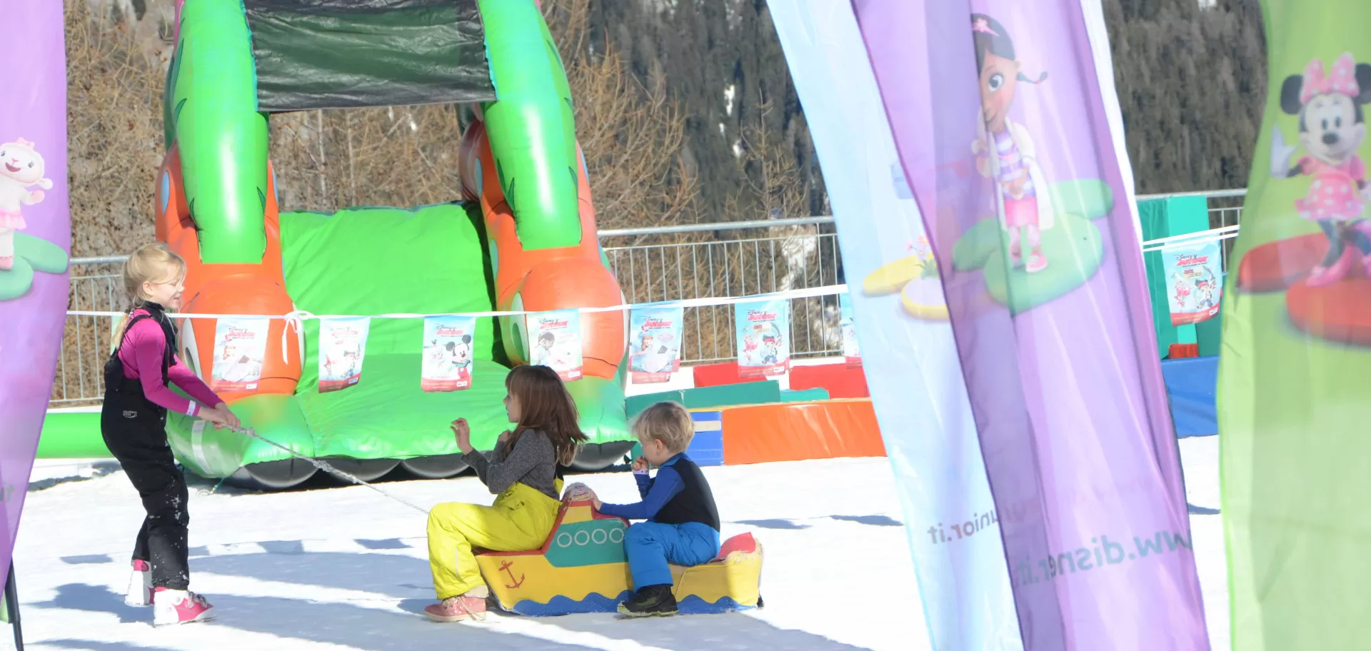 Alla partenza degli impianti di Alpe Lusia e di Bellamonte si trovano poi tappeti per far muovere ai bimbi i primi passi sci ai piedi in totale sicurezza e con personale qualificato. Da non perdere poi la lunga pista di slittino La Fraina, che si sviluppa per 2100 metri nei boschi ed è servita dalla nuova cabinovia "Castelir-Le Fassane".