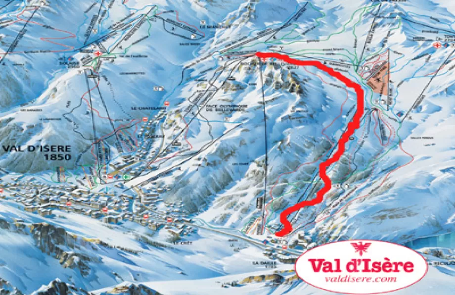 Da La Daille, subito prima del paese di Val d'Isère, si sale con la funicolare Funival sino a Rocher de Bellevarde. La pista OK inizia a destra della stazione di arrivo.