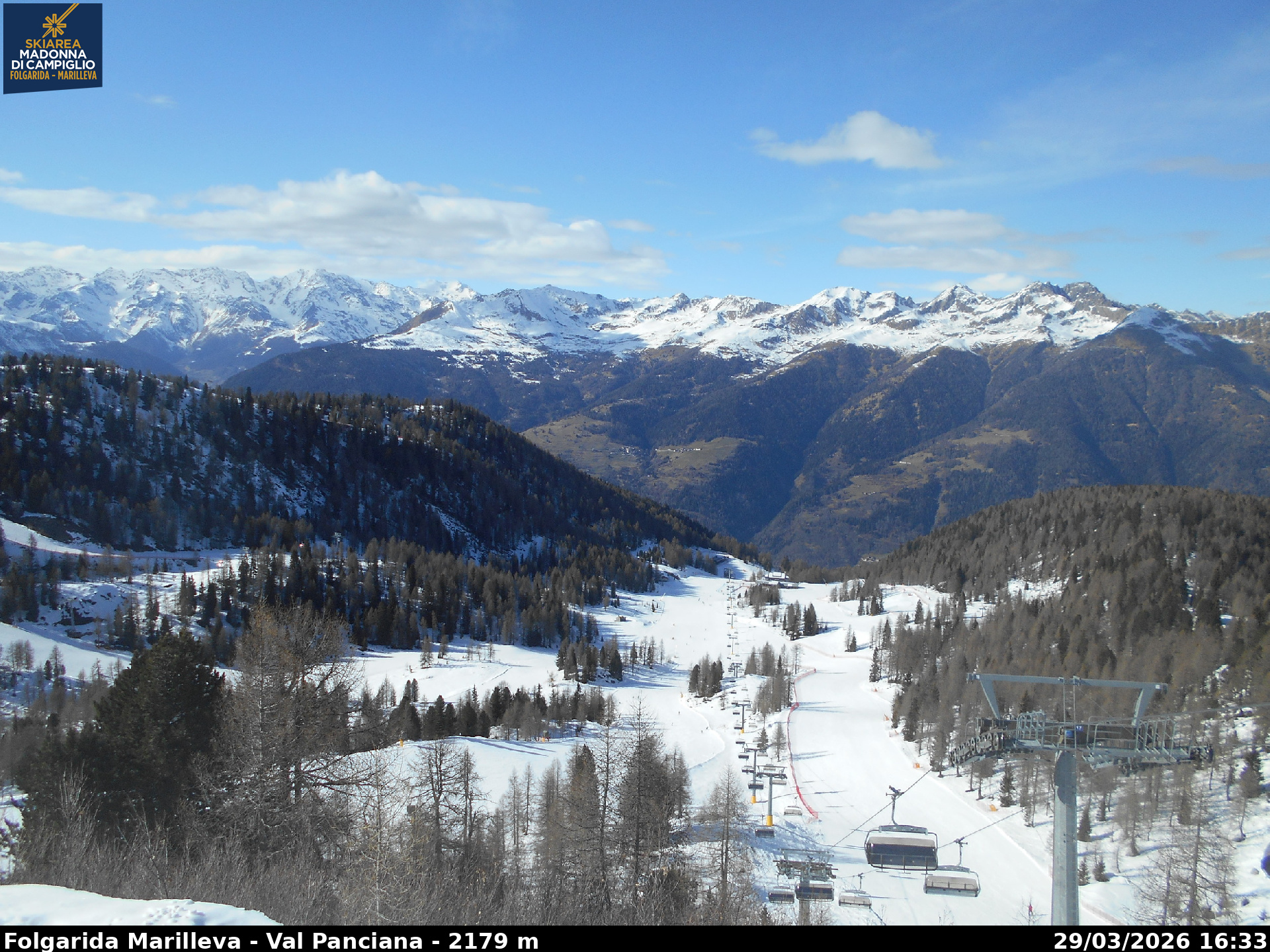 Webcamlive Folgarida - Marilleva. Le webcam sul comprensorio di Folgarida, collegato con Marilleva e Madonnda di Campiglio, in Val di Sole, Trentino. Dal Monte Spoverino al Monte Vigo con varie panoramiche sulle psite e sulle montagne circostanti (Gruppo Brenta e Ortles Cevedale)