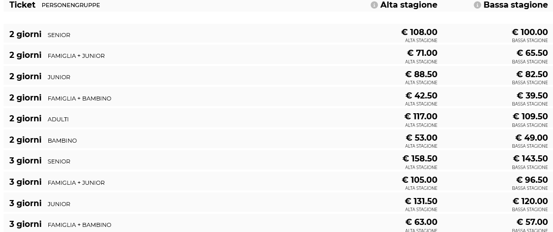 LISTINO PREZZI SKIPASS SOLDA 2025 - 2026