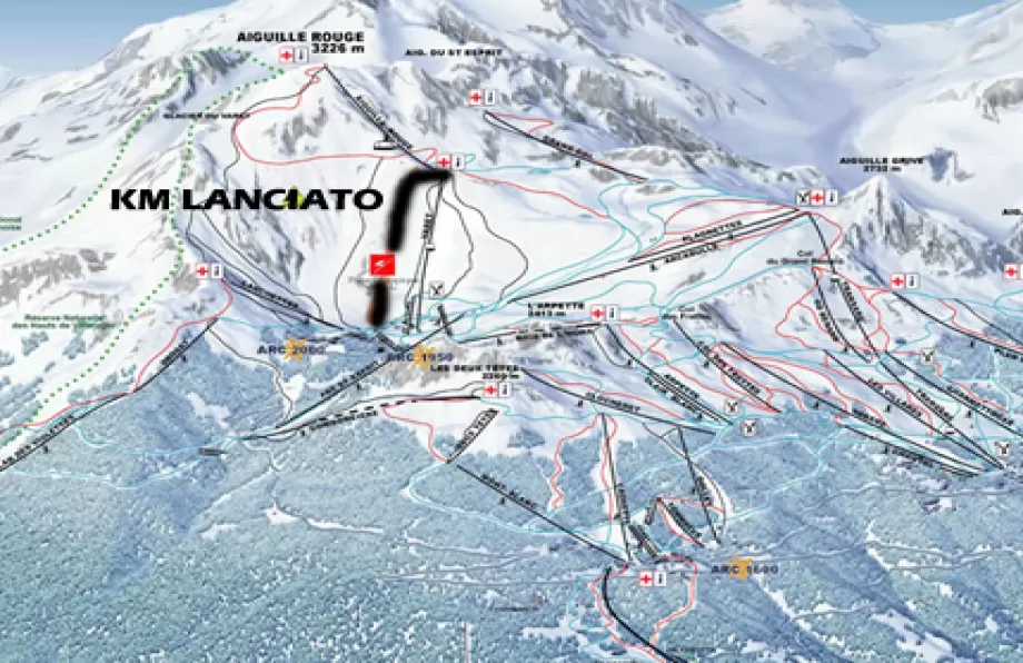 da Arc 2000 occorre salire in quota con la telecabina Varet. Salendo è possibile ammirare il vallone che ospita il tracciato sul lato sinistro. Scendendo invece la pista inizia subito sotto la stazione di monte sul lato destro.