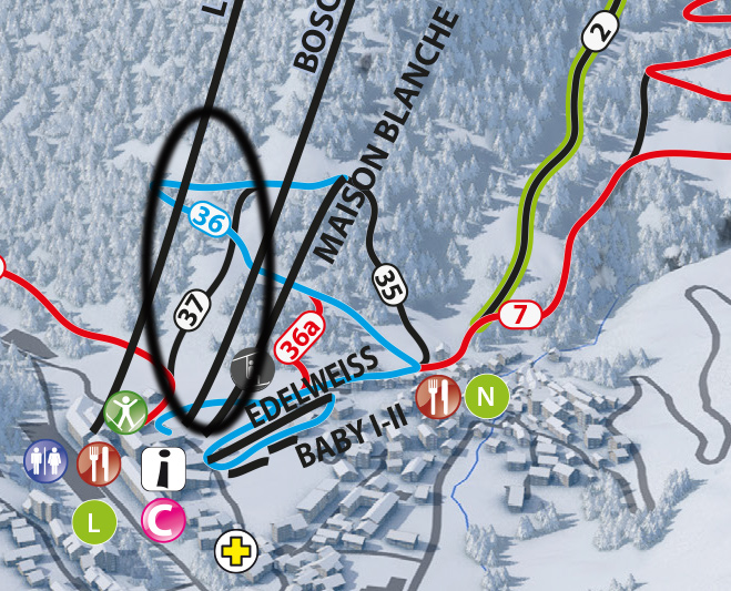 Da La Thuile prendi la seggiovia quadriposto fissa Mason Blanche, subito a destra della seggiovia Bosco Express. Attenzione perchè i due impianti, benchè possano sembrare paralleli, non finiscono nello stesso punto! Una volta a monte, scendi sul lato sinistro imboccando la pista facile n. 36. La 37 inizia subito dopo, alla tua sinistra.