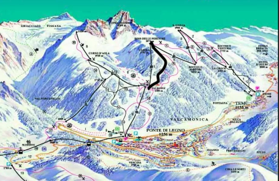 Da Pontedilegno si prende la seggiovia Valbione, quindi la seggiovia Casola
