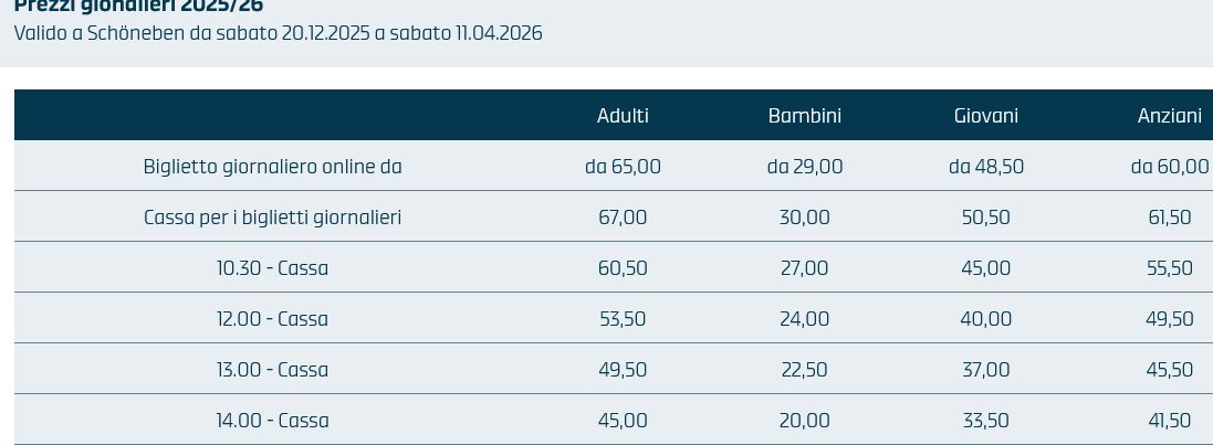Prezzo skipass giornaliero intero: 67.00