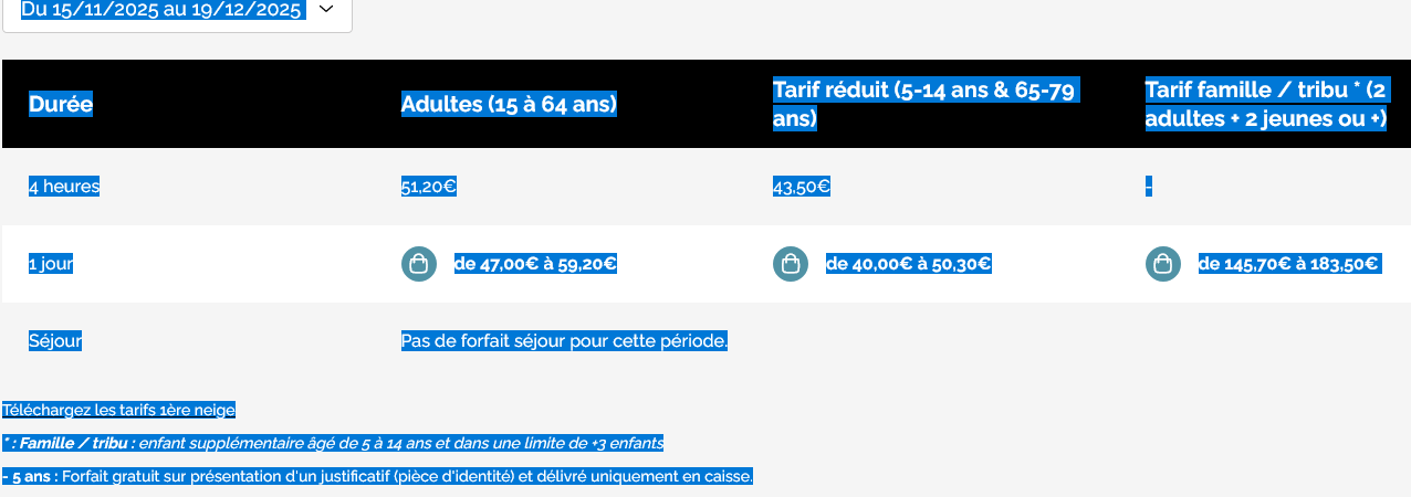 LISTINO PREZZI SKIPASS CHAMONIX 2025 - 2026