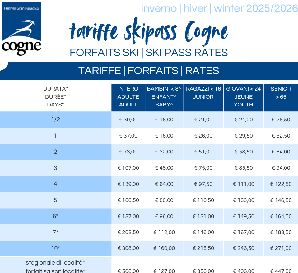 LISTINO PREZZI SKIPASS 2025 - 2026 COGNE