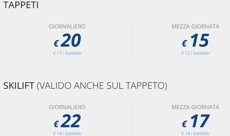 Prezzo skipass giornaliero intero: 22,00