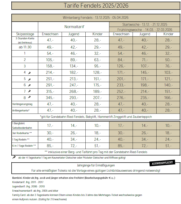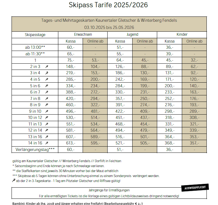 Skipass Kaunertal - Fendels 2025 - 2026