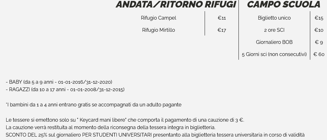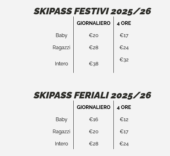 LISTINO PREZZI SKIPASS LIZZOLA 2025 - 2026