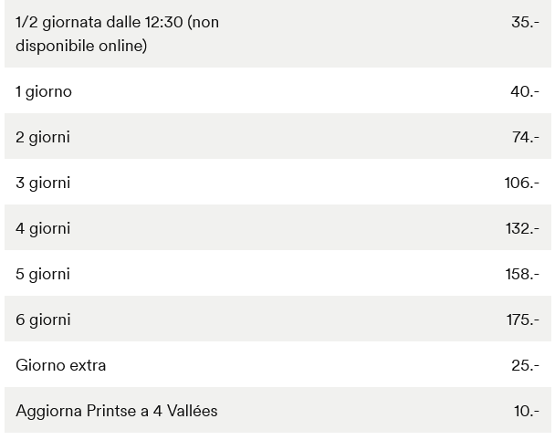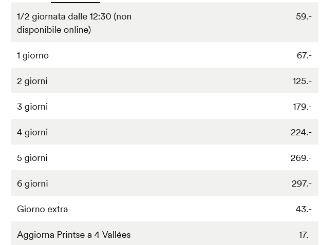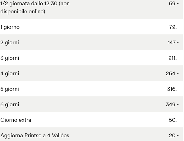 SKIPASS ADULTI 79 CHF (circa 85,73 euro al cambio attuale)