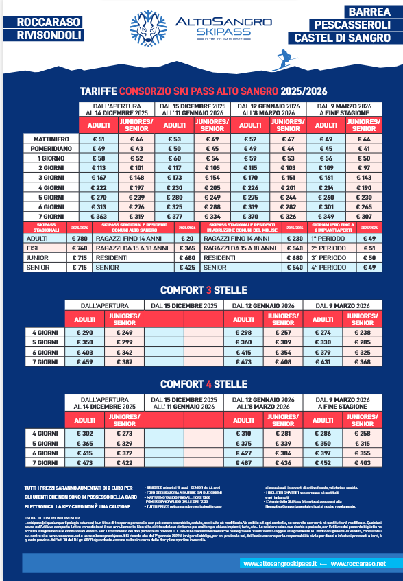 LISTINO PREZZI SKIPASS ALTOSANGRO PESCOCOSTANZO 2025 - 2026