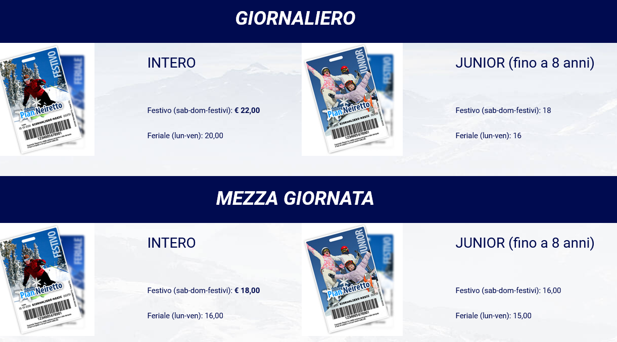 LISTINO PREZZI SKIPASS PIAN NEIRETTO - COAZZE 2025-2026