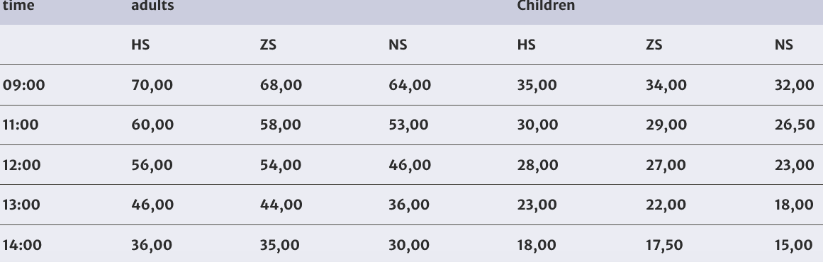 | Low season: (NS) | High season: (HS) | Mid-season: (ZS) |