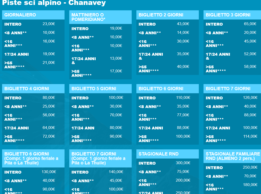 LISTINO PREZZI SKIPASS RHEMES NOTRE DAME 2025 - 2026