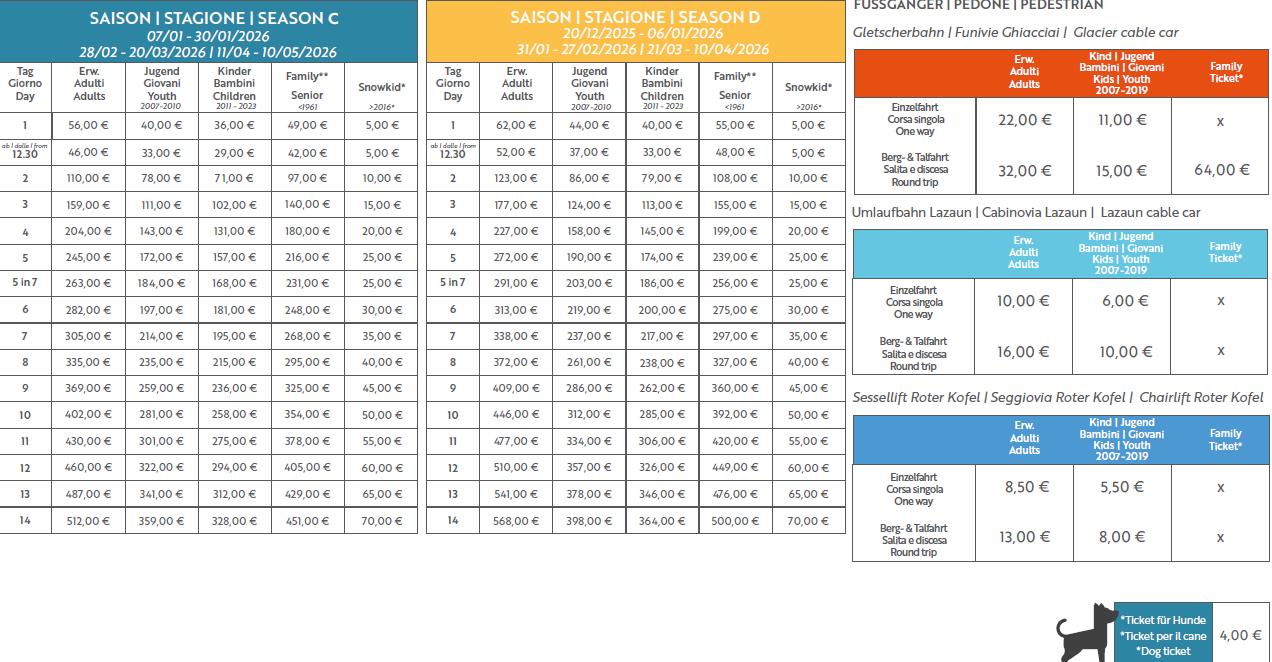 PREZZI SKIPASS VAL SENALES 2025 - 2026