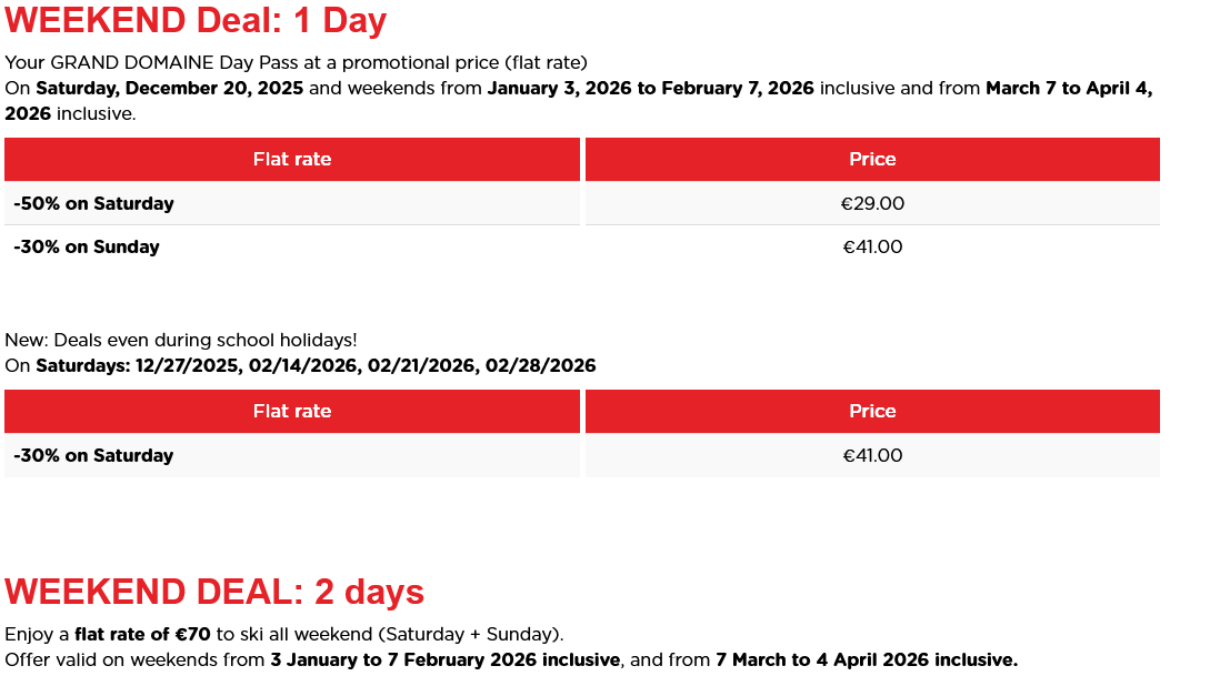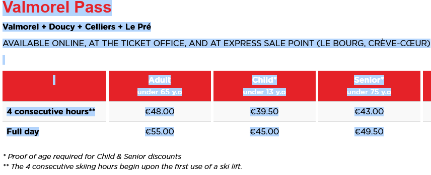 LISTINO PREZZI SKIPASS 2025 - 2026 VALMOREL ST FRANCOIS LONGCHAMP