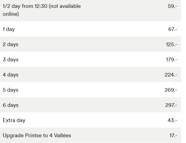 Prezzo skipass giornaliero intero: 85,73 circa al cambio attuale