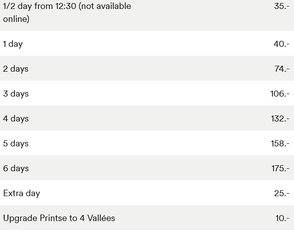 LISTINO PREZZI SKIPASS Veysonnaz 2025 - 2026