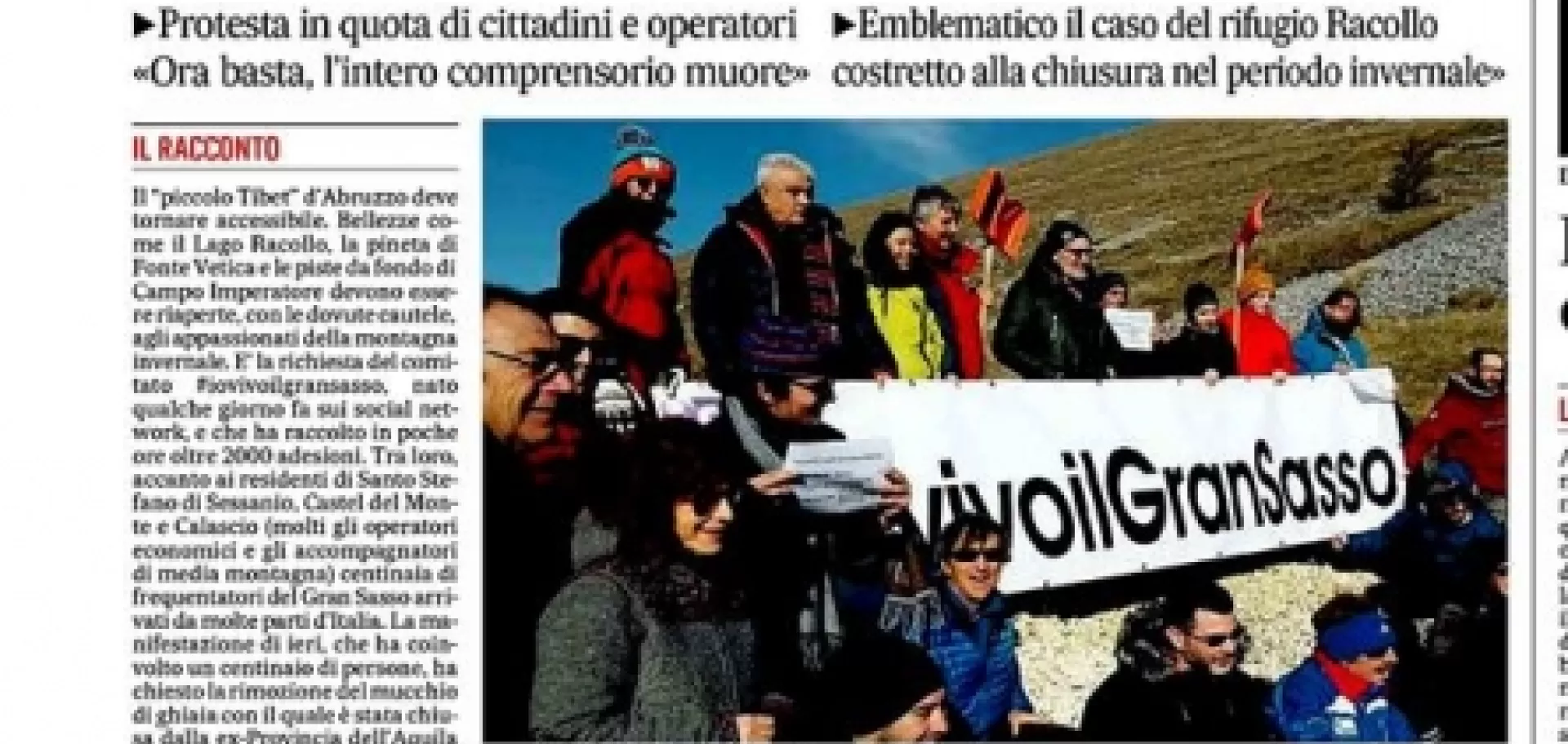 Un mix infernale fra burocrazia pusillanime, incompetenza, pedanteria, disorganizzazione e semplice ignoranza – ignoranza del valore aggiunto della montagna d’inverno -  sta affossando un patrimonio straordinario come il Gran Sasso e la sua gente. Privando completamente l’accessibilità alla grande montagna appenninica. Certo, la tragica fatalità dell’anno scorso, la valanga di Rigopiano, fa ancora tremare i pubblici amministratori locali di Abruzzo, ma per non saper né leggere né scrivere, si è arrivati al paradosso di chiudere strade di vitale importanza turistica anche con neve assente o scarsa. Ci piace dunque segnalare e mettere in rilievo l’azione di denuncia attraverso vari canali tradizionali e social di Stefano Ardito, giornalista, divulgatore e storico della montagna, uno dei massimi esperti di Appennino: per esempio formando il gruppo facebook  #iovivoilgransasso e promuovendo la ciaspolata di protesta svoltasi il 3 gennaio ‘nel piccolo Tibet’ (fra Castel del Monte, Santo Stefano di Sessanio e Calascio), contro l’inopinata chiusura della strada – con uno spregevole muro di ghiaia -  verso il Lago Racollo e l’omonimo rifugio, che così non ha potuto aprire. In realtà questa strada è già tre inverni che viene chiusa per non meglio identificati motivi di sicurezza.  Giova qui riassumere i punti salienti dell’ennesimo anno orribile per l’inverno abruzzese, sintetizzato dai contributi di Ardito su vari organi di stampa come Il Messaggero e testate locali, su vari siti internet e su face book.
