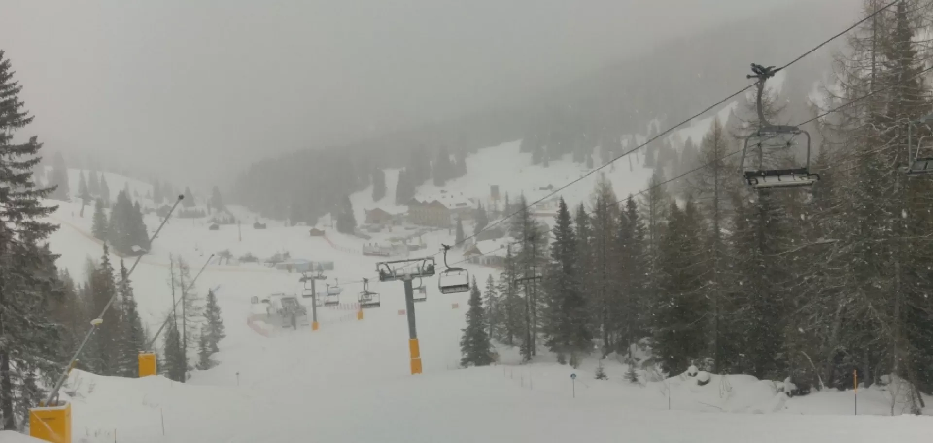 NELLE FOTO, LE PISTE DELL'ALTA BADIA - ZONA CHERZ, PRALONGIA, CAMPOLONGO - DESERTE DURANTE LA NEVICATA DELL'11 DICEMBRE