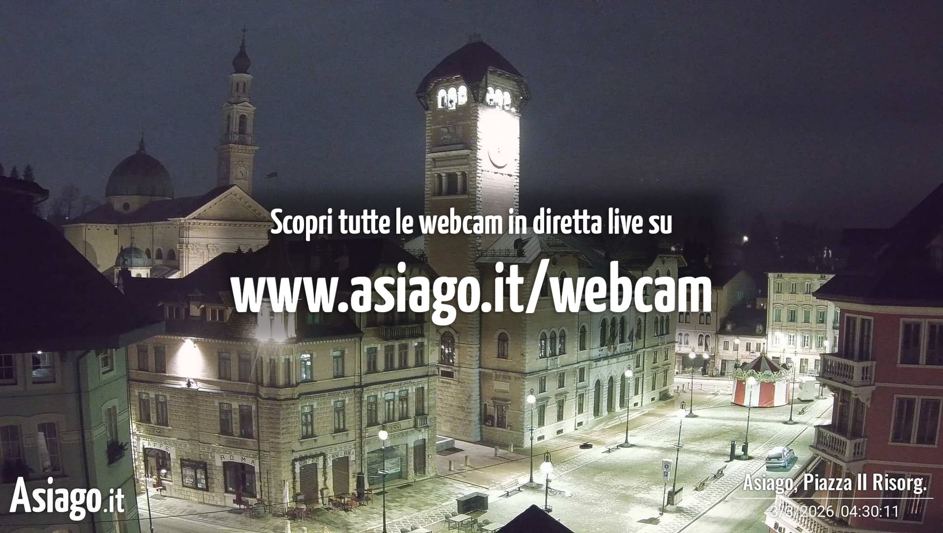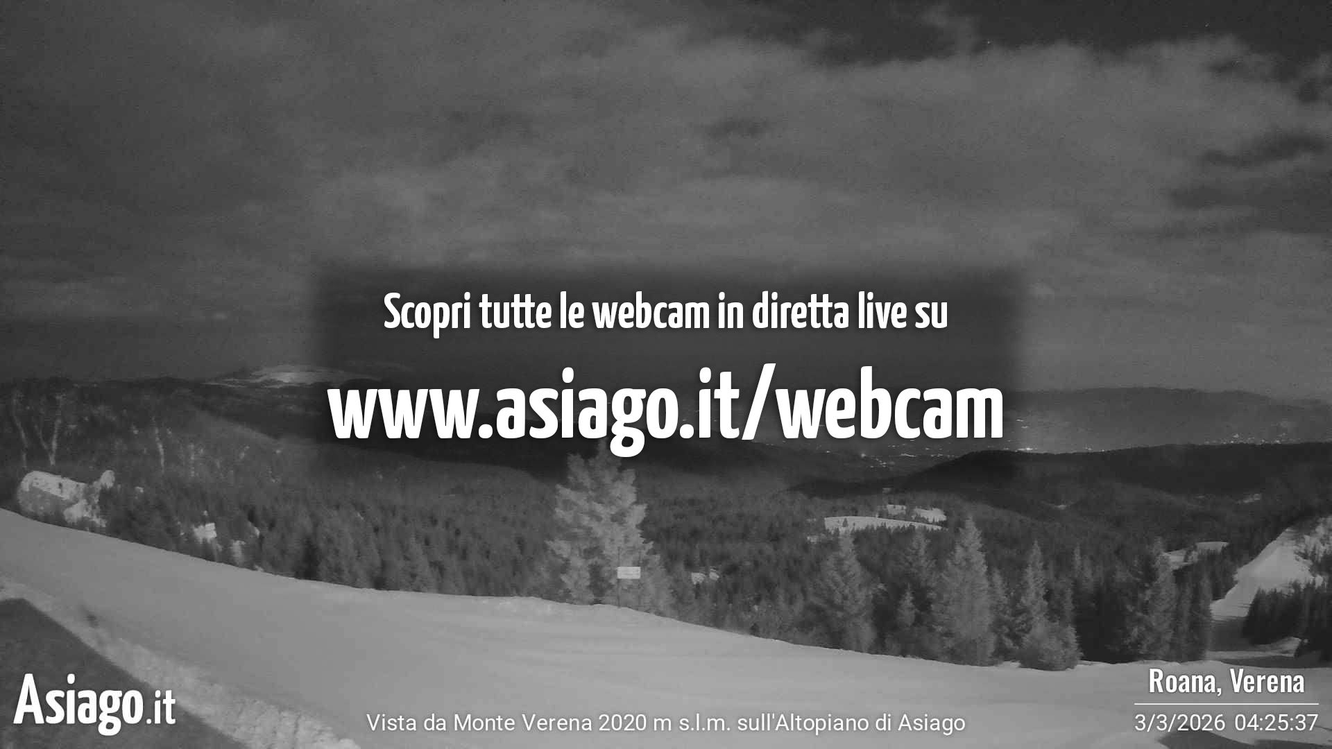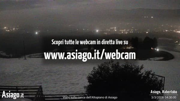 Webcam Asiago, le livecam per osservare in tempo reale le condizioni di innevamento e meteo nel comprensorio sciistico Asiago Sette Comuni. Le webcam sono puntate sulle ski area Kaberlaba, Roana Verena, Gallio, Campo Mulo e sulla città di Asiago. Webcam fornite da https://www.asiago.it/it/webcam/.