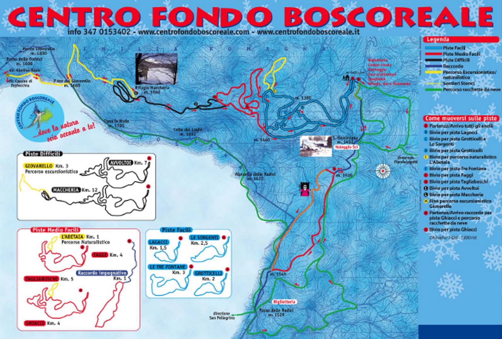 Clicca sulla mappa per ingrandire e guardare la cartina completa delle pisteSkimap Frassinoro Piandelagotti. La cartina riporta i vari anelli per lo sci di fondo della ski area di Boscoreale, una delle più importanti realtà appenniniche per lo sci nordico.