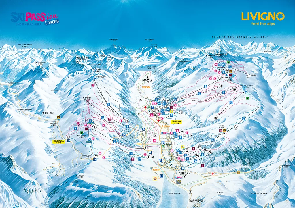 Livigno è una delle località sciistiche lombarde più complete sia dal punto di vista strettamente sciistico sia per quello che riguarda l'ospitalità e i servizi. Grazie al clima rigido la neve rimane sino a stagione inoltrata e si mantiene sempre farinosa e morbida; se poi quella naturale manca, il capillare sistema per l'innevamento programmato permette di avere piste sempre al top. Tuttavia gli sciatori non soffrono il freddo grazie ai nuovi impianti coperti (seggiovie e cabinovie ad agganciamento automatico).