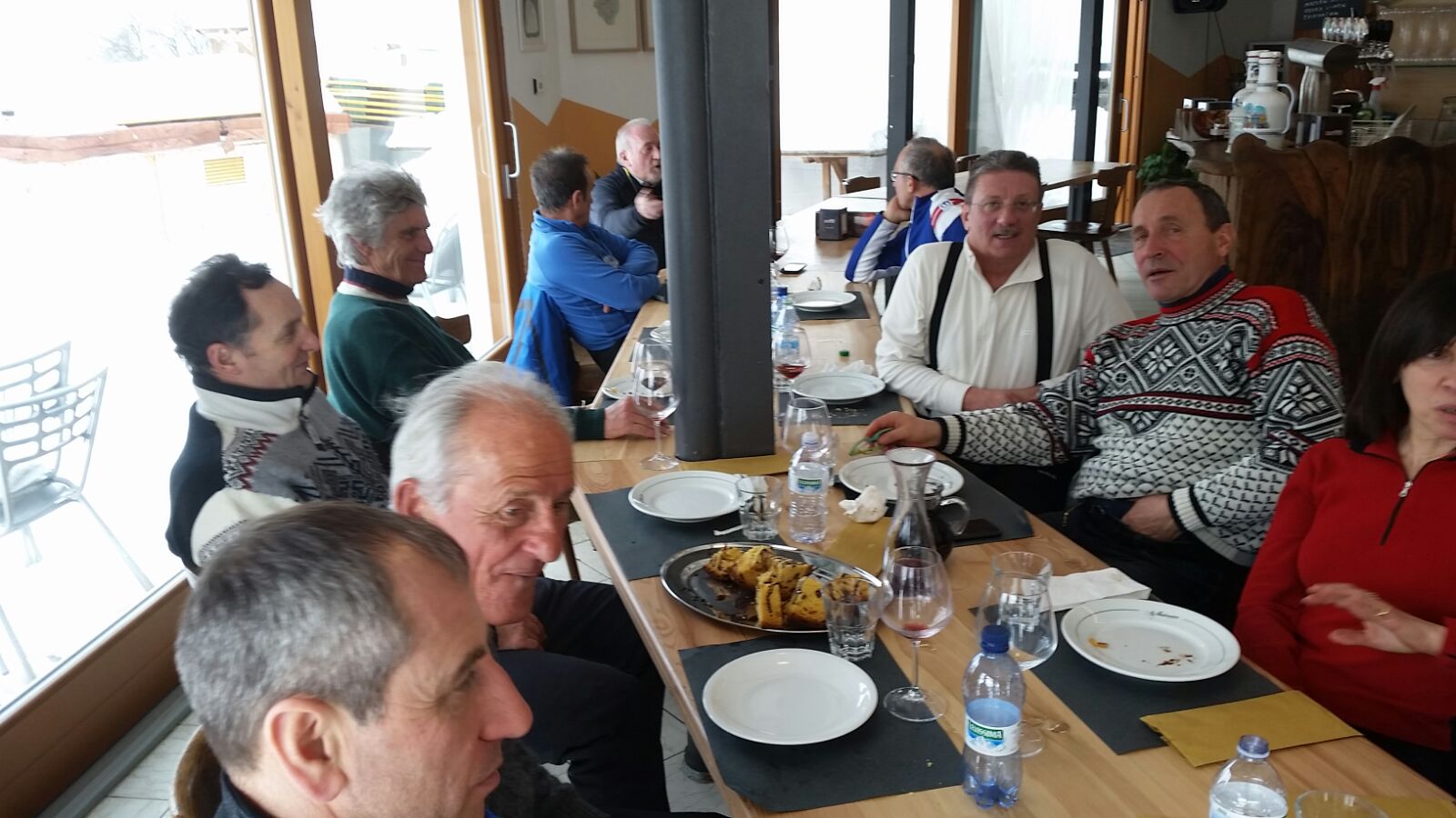 pochi sciatori e neve farinosa con le classiche "righine" sulle piste,bella compagnia! Allego foto della sciata,ma anche della mangiata,perchè oggi gli S.D.M. (Sciatori Del Mercoledì) erano anche Sciatori Delle Merende...............